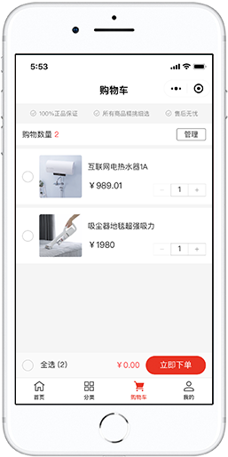 通过全民分销和指定分销方式,邀请微信好友下单赚取佣金,降低人工营销宣传成本,实现人人分享赚钱的乐趣,促进商城社交化推广